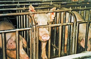 В других областях животноводства картина сходная. Например, свиней также держат не на воле, а в помещениях в тесных загонах. Ожидающих приплода свиноматок на многих фабриках-фермах помещают в одиночные клетки размером 0,6×2 метра, в которых они не могут даже повернуться. Кур держат в многоярусных клетках, где они практически лишены свободы движений из-за тесноты. Таким образом, везде, будь то промышленное производство свинины, мяса птицы или яиц, реализуются одни и те же принципы — во главу угла ставится задача получения с каждого квадратного метра площади как можно большего количества мяса, молока или яиц при полнейшем пренебрежении нуждами и правами животных. В этих условиях производство оказывается в полной зависимости от «химических костылей» — гормонов, антибиотиков, пестицидов и др., потому что все иные способы улучшения продуктивности и поддержания животных в добром здравии обходятся слишком дорого и, стало быть, невыгодны. В итоге производятся огромные объёмы сравнительно дешёвой продукции животноводства, есть которую, однако, небезопасно.